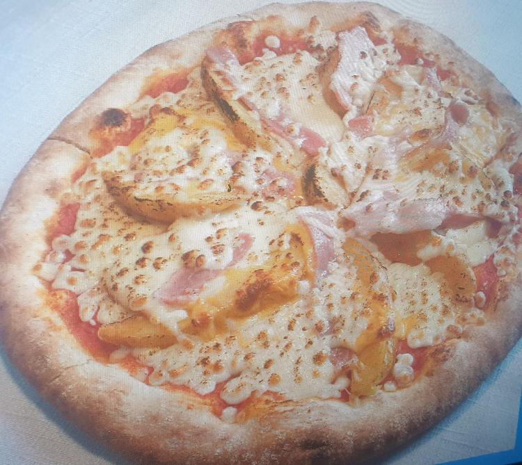 Pâte artisanale cuite au feu de bois,sauce tomate,potatoes,cheddar,fromage à raclette,poitrine fumée , sauce pom'frite,mozzarella.